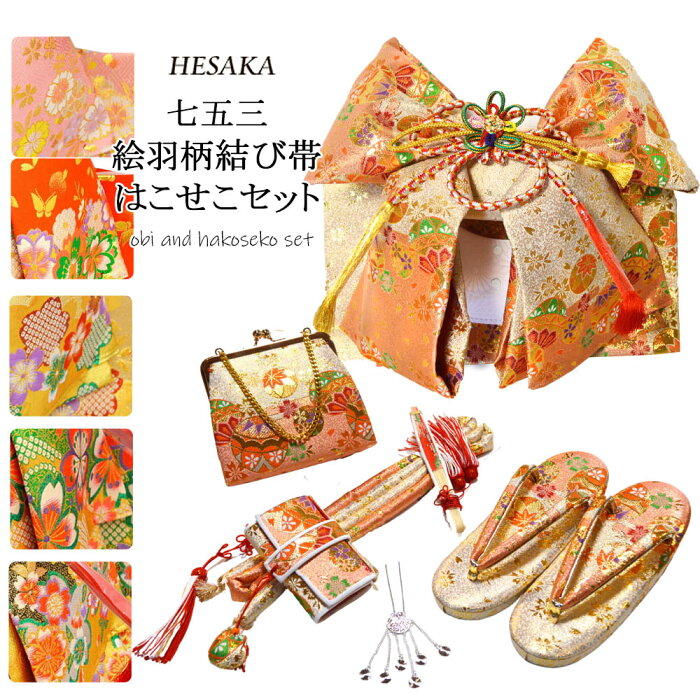 七五三 結び帯 箱せこセット はこせこ 7点 セット 絵羽柄 帯 セット 7歳 七歳 3歳 三歳 5歳 五歳 { 結び帯 付け帯 御祝帯 作り帯 帯 はこせこ ハコセコ 箱迫 箱せこ 草履 バッグ ペアセット セット 女の子 子供