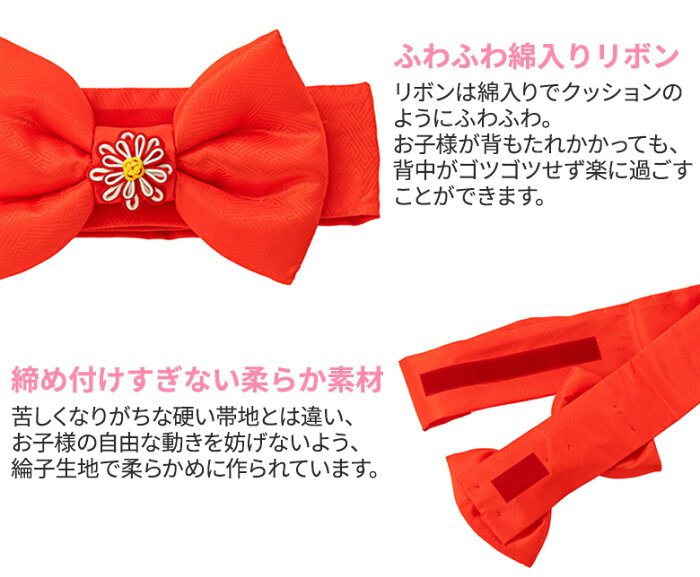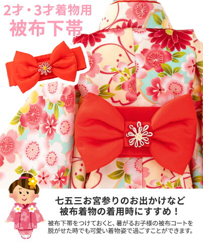 【被布下帯】被布着物用ワンタッチ作り帯 女の子帯 子ども帯 被布帯 赤 3才 2才【七五三】