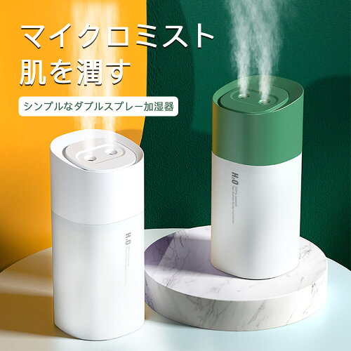 加湿器 卓上 ダブルノズル 加湿機 超静音 小型 車用加湿器 350ml 大容量 空気浄化機 空焚き防止 3時間自動OFF LEDライト付き 乾燥対策 静電気防止 快適な睡眠 保湿 潤い霧 連続加湿 操作しやすい 3種類加湿モード オフィス リビング