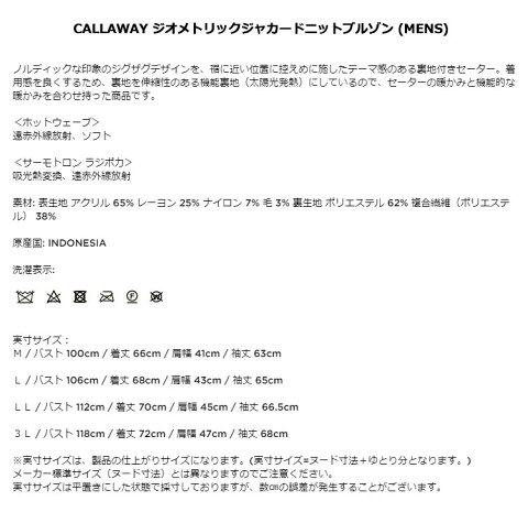 【30%OFF・SALE・セール】 秋 冬 モデル Callaway GOLF キャロウェイ ゴルフウェア C21218111 ジオメトリック ジャカードニット ブルゾン 裏地付きセーター (メンズ)