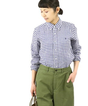 【30%OFF】ジムフレックス(Gymphlex)リネン 長袖 ギンガム ストライプ シャツ ボタンダウンシャツ ギンガムチェックシャツ・J-0872LNP-0322201(レディース)(JP)