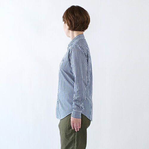 Style レディース ギンガムチェック ボタンダウン長袖シャツ J-0872TSS Fabrique 綿100% Color ネイビーギンガムチェック Made in 日本 Item 「Gymphlex」定番人気の長袖ボタンダウンシャツ。