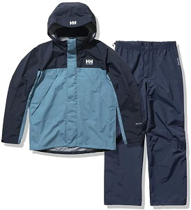 HELLY HANSENの定番である、防水ジャケットとパンツがセットになったレインスーツ。