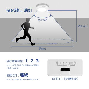 ●【人感センサー搭載・5つ点灯モード】本製品は人感センサーを搭載されているので、人の動きが感知するとライトは自動的に60秒間点灯します。
