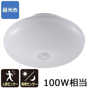 屋内照明 小型・ミニシーリングライト LE-Y14DK-WR 人感センサー付き LEDミニシーリングライト(100W相当/1500lm/昼光色) OHM(オーム電機)